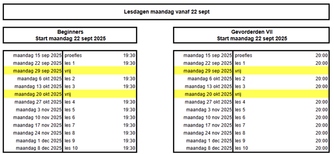 Agenda van Salsa Lessen